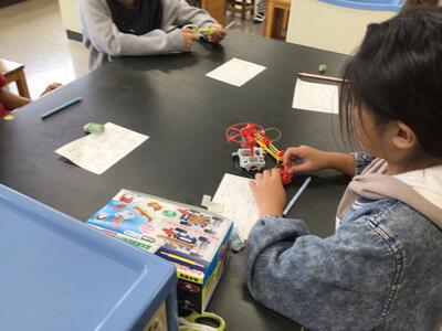 1年生に優しくおもちゃの遊び方を教えていた2年生。お兄さん・お姉さんに成長しました。