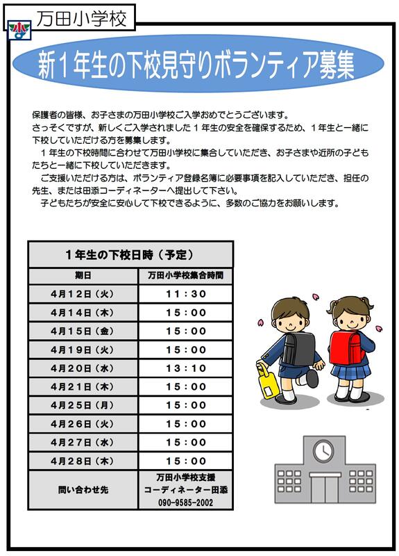 「登校時間中に、ある地域の通学路を車で通っていました。信号のない横断歩道を渡る登校班がいたので、その子供たちが渡り終えるまで信号の手前で車を停めて、待っていました。すると、横断歩道を渡り終えたところで、(6年生の)男の子と女の子が振り返って、私の方にお辞儀をしてくれたのです。とても気持ちの良い気分になりました。感動しました。万田小では、いろいろな改革が進められていますが、子供たちの姿からもその変化が伝わってきました。」…と。