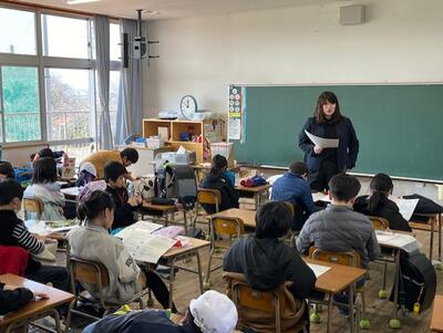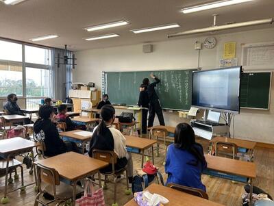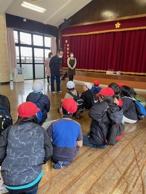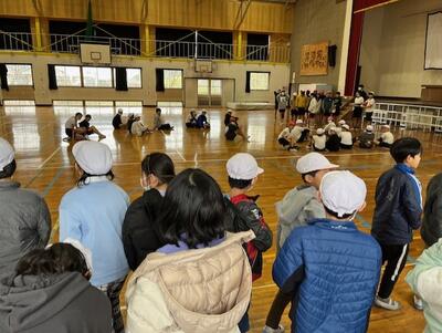 6年2組の子供たちは、野原八幡宮の風流について、八幡小学校の子供たちから、しっかりと話を聞くことができていました。