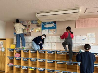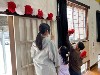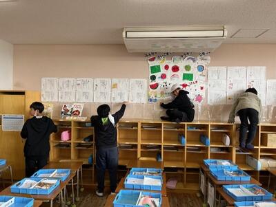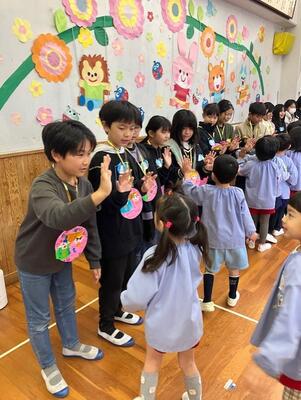 ボランティア委員会の子供たちが1年生を招待してイベントを開催しました。