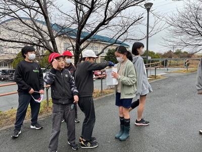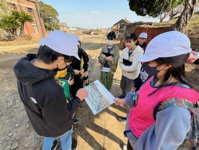 荒尾市役所から依頼を受けて「町づくり」に参加している5年生。