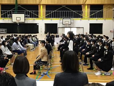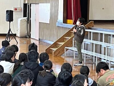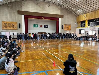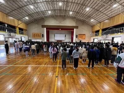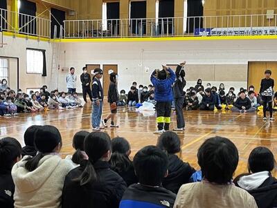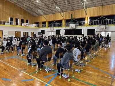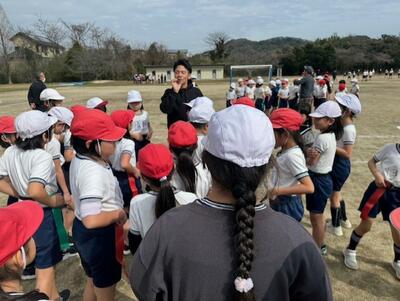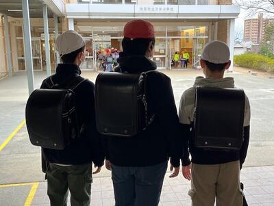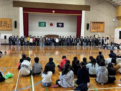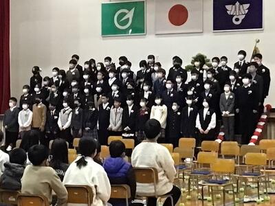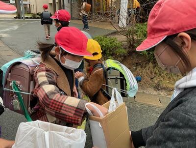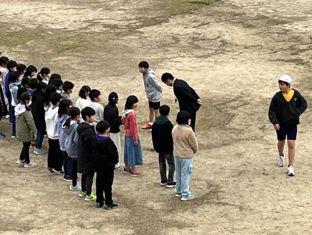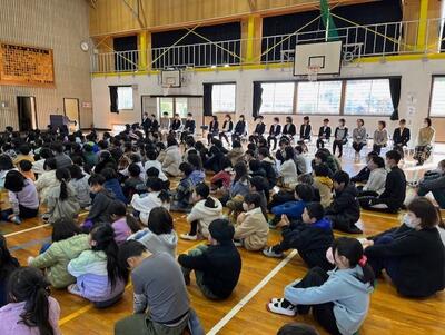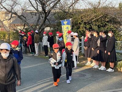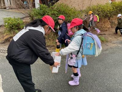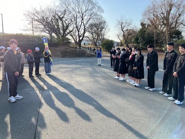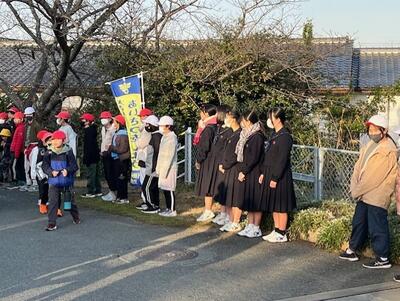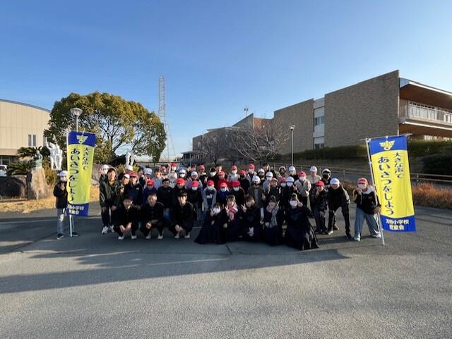 海陽中の生徒が、万田小学校にあいさつ運動に来てくれました!
