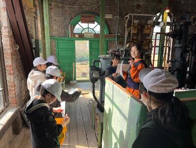 万田坑ガイドは今までに数回行ってきたので、だんだんと上達しています。ガイドの中で、クイズを出したり、実物を小さくしたものを使って具体的に説明したりと、工夫しながら万田坑について伝えることができました。