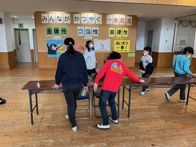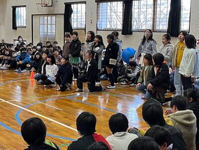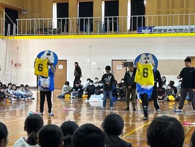 進化じゃんけんを行い、1年生は大喜び。委員会の高学年の子供たちの進行もバッチリでした!