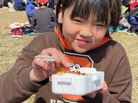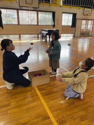 スクールランチ委員会が企画した「豆つかみ大会」が行われました。
