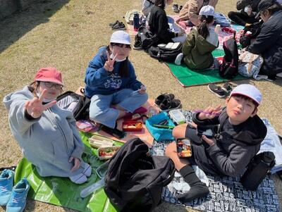 昼食は、三角小の6年生と一緒に食べました。友達になれたようです。