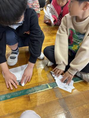 高学年の子供たちは、低学年の子供たちをサポートしながら活動していました。