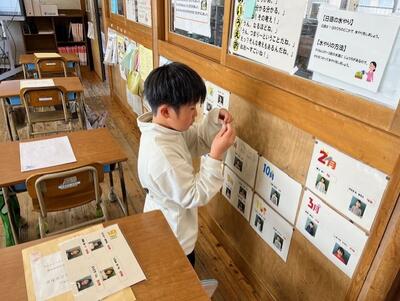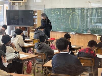 【先生ではなく、学習リーダーの子供たちが黒板に書いています】