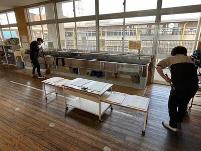 万田小学校のみんなが気持ちよく泳げるように、しっかりと掃除をしてくれました。