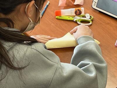 学級のみんなで「おつきみうさぎ」を制作しました。お互いに声をかけ合いながら楽しく活動していました。