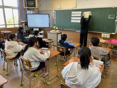 国語科「どうぶつ園のじゅうい」の学習でした。「私は~と思うよ!」「キーワードは〇〇だから違うんじゃないかな?」と活発に話し合いがされていました。