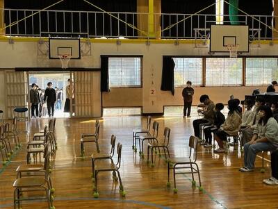 今回は、丸尾先生、奥田先生、寺本先生が立候補者となり「まんだ市長選挙」が行われました。3人の先生方の演説(シナリオが用意されています!)を聞き、どの立候補者に票を入れるのか真剣に考えていました。