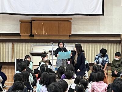 昼休みに「くじらぐも」さんによる読み聞かせがありました。