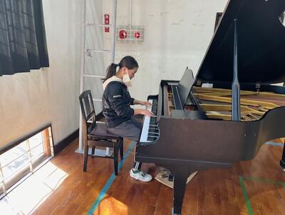 9月13日(金)、万田小学校校区にある四ツ山神社では四ツ山神社大祭が行われました。そこで、3年生の4人の子供たちが巫女舞を披露しました。