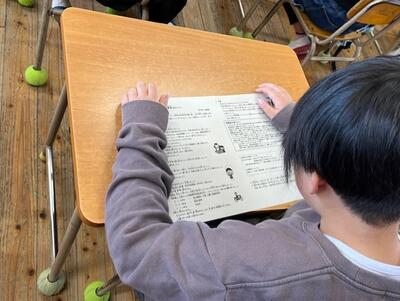 文章をもとに、しっかりと学ぶことができていた1年生。ノートに文を書くのも上手になりました!