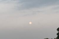 今朝、通勤途中に西の空を見ると、きれいな月が出ていました。熊本市内から海岸線を通って、長洲方面に行く頃には、まさしく正面に月が見える状態でした。ちょっとだけ、道路の脇に車を寄せて停車し、写真を撮りました。