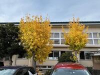 今月14日の校長ブログで紹介したときの体育館東側のイチョウは、まだ緑色でした。あれから約2週間、ようやく色が変わってきました。写真を見てもわかるように、真っ黄色に変身しています。玄関前の桜の木は、ほとんどの葉が落ちてしまいました。黄色くなったイチョウの葉が全部落ちてしまう頃には、校内の落葉樹はすっかりなくなってしまうのでしょうね。明日から12月に入り、いよいよ冬本番を迎えますね~。風邪引かないように!