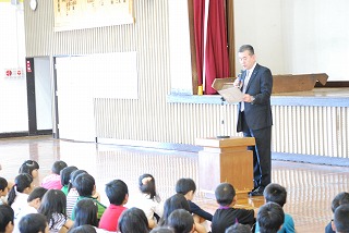 平成27年度12月16日(水)全校集会 投稿日時 : 2015/12/17 学校サイト管理者 12月16日(水)の朝、全校集会を行いました。集会の中では、まず教頭先生から、「師走」ということで交通量も増え、夕方暗くなるのも早くなるために交通事故に十分注意すること、冬休み前ということもあり「絶対に火遊びをしてはいけない」ということなどについてお話がありました。次に、全校で取り組んできた「学習用具コンクール」と「学習姿勢コンクール」、先日行われた「小体連バドミントン大会」の表彰を行いました。学習用具、学習姿勢については継続して取組んで生きたいと思います。また、バドミントン部の活躍に続いて、12月19日(土)に行われるバスケットボール部、サッカー部の小体連の大会でも、万田っ子が活躍することを期待しています。