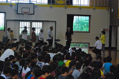 7月10日(金)の朝に体育館で全校集会を行いました。