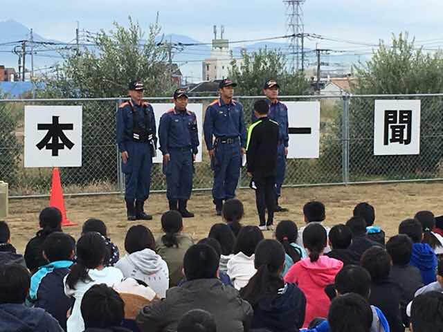 火災避難訓練 投稿日時 : 2018/11/16 学校サイト管理者 火災避難訓練が行われました。本日、2時間目に有明消防署の方をお招きして、火災避難訓練が行われました。家庭科室から出火したという想定で全校児童が運動場に避難しました。避難の様子はとても真剣で、消防署の方からもほめていただきました。また、消防士さんからの質問に子どもたちは一生懸命に答えていました。これからの季節は、火災が起こりやすくなります。年末に向けて火の用心でいきましょう。消火器の説明.jpg 火点に向けて放水.jpg