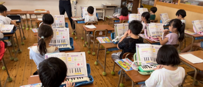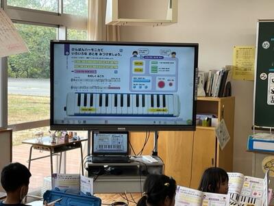 1年生にとって、初めてのけんばんハーモニカを使った授業がありました。