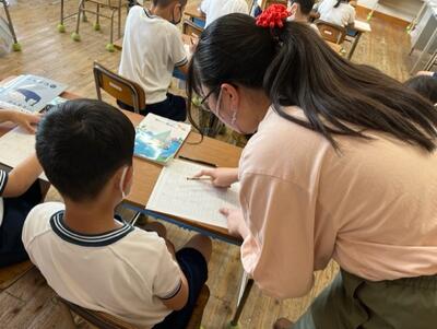 今日は、2年生、1年生、3年生の授業にサポートとして入られ、最後は1年2組の子供たちの給食もお手伝いしていただきました。ありがとうございました。