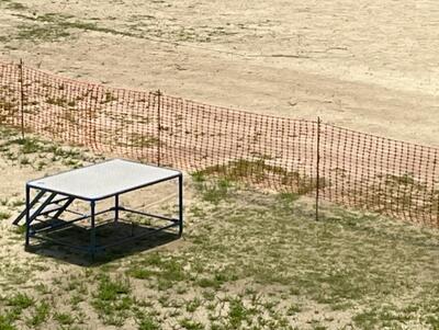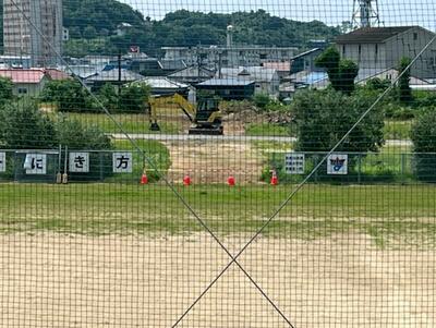 写真ではちょっとわかりづらいかもしれませんが、運動場の排水工事(夏休み期間中~11月頃)のため、仮のフェンスが設置されました。