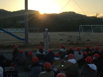 6年生は、そのまま日の出の光に見送られながら、万田小を後にしていくのでした。