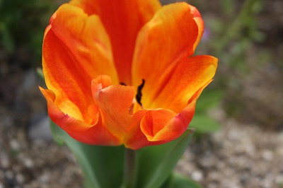 | ユリ科のチューリップです。 花言葉は「博愛・思いやり」ですが、チューリップは色で花言葉が変わります。画像のチューリップはオレンジですので、「照れ屋」になります。 おもしろいですね(^_^) |