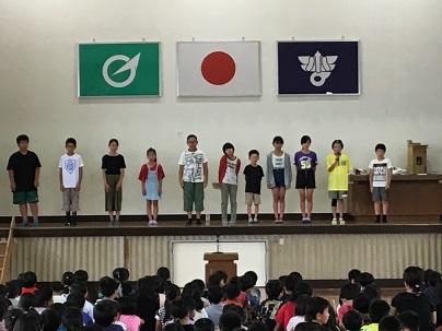 6月21日金曜日の朝活動で、児童集会が行われました。
