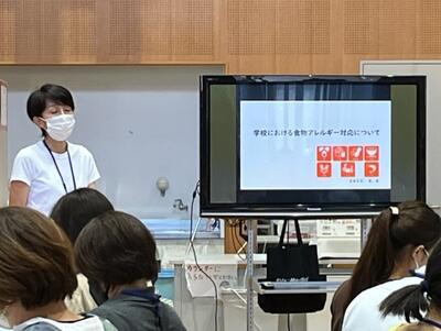 食物アレルギーは、給食以外でも起きることなので、先生たちも真剣な表情で学びました。