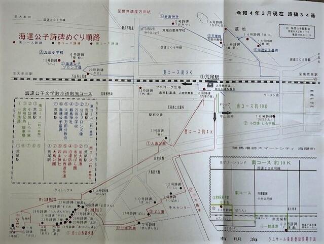 子供たち一人一人にいただいた「海達公子詩碑めぐり順路」によると、万田校区周辺に公子さんの作った詩碑は、現在34基設置されているとのことでした。