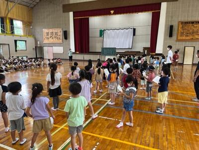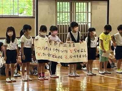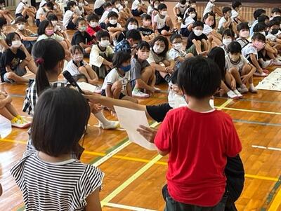 1時間目に、体育館で低学年全員による「人権集会(なかよし集会)」がありました。