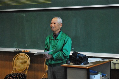 平成27年度「万田坑学習」3年生総合的な学習の時間 投稿日時 : 2015/12/18 学校サイト管理者 12月17日(木)第1・2校時に3年生が総合的な学習の時間で、世界遺産・万田坑でボランティアガイドをされている吉田さんを講師にお招きして、「万田坑学習」を行いました。実際に炭鉱で働かれていたご経験のある吉田さんには、事前に児童が考えた質問に対してわかりやすくとても丁寧に答えていただきました。例えば、「働いていてどんなときがうれしかったですか?」という質問には「計画された仕事を終えて、事故やけがをせずに無事に家に帰られるときが一番ほっとして、うれしかったです。」と答えられたり、「働いていて、どんなことが怖かったですか?」という問いには「石炭を掘る場所は、トンネルのようになっていて、それは、砂場で作る山のトンネルのようにいつ崩れるかわからないので怖かったです。」と答えられていました。また、「お弁当はどんなおかずを食べていましたか?」という質問には、「石炭を掘る場所はとても暑くて湿気があったので、おかずがいたんでしまわないように、なるべく汁気のない塩昆布などがおおかったです。」とのことでした。その他にも、「働くときの服装は?」「名札はつけていましたか?」など多くの質問に笑顔で一つ一つ丁寧に答えていただき、児童は、当時の炭鉱で働かれている人たちのことについてたくさんのことを学び、万田坑に対する認識も深まりました。教えていただいたことを生かして、さらに万田坑の学習を進め、まとめていきたいと思います。