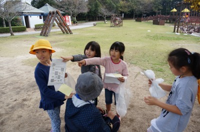 平成27年度1年生「秋を見つけよう」(諏訪公園) 投稿日時 : 2015/12/21 学校サイト管理者 11月20日(金)1年生がバスに乗って大牟田の諏訪公園まで校外学習に出かけました。ルールやマナーを守って仲良く遊具を使ったり、落ち葉や木の実などのたくさんの秋を見つけたりして楽しく活動することができました。見つけたものを使って、秋のおもちゃ作りにも挑戦します。おいしいお弁当ありがとうございました。