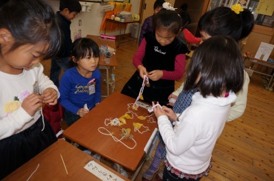 平成27年度1年生「秋のおもちゃ作り」 投稿日時 : 2015/12/21 学校サイト管理者 1年生が諏訪公園の「秋さがし」で見つけたものを使って「秋のおもちゃ作り」を行いました。みんなで手作りのおもちゃを工夫して作って、楽しく遊びました。