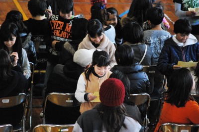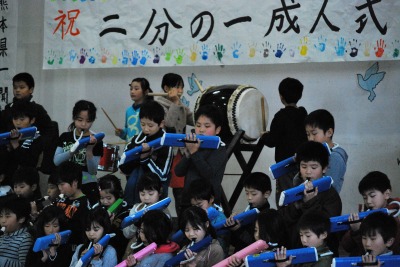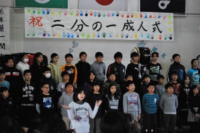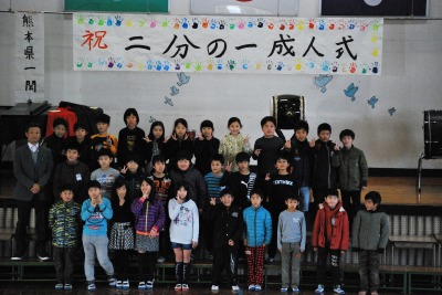 平成27年度二分の一成人式(4年生) 投稿日時 : 2016/02/03 学校サイト管理者 2月2日(火)第5・6校時に体育館において、4年生児童と保護者の皆様で、「二分の一成人式」を行いました。「将来の夢」について発表したり、「感謝の手紙」を読んだり、歌や合奏の発表をしたりしました。10才になった自分の成長を喜び、育ててもらったおうちの人に感謝の気持ちを伝える、とってもすてきな式となりました。