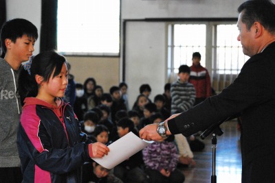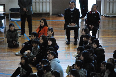 平成27年度全校集会(教頭先生のお話・表彰) 投稿日時 : 2016/02/10 学校サイト管理者 2月10日(水)に全校集会を行いました。教頭先生にご家族のお話や日記の紹介をしていただきました。その後、先日行われた荒尾市小体連ミニバスケット6年生大会で男女共に見事優勝することができたので、表彰を行いました。おめでとうございます。
