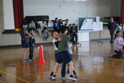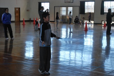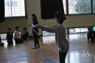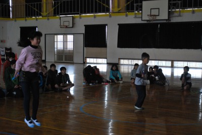 平成27年度校内なわとび大会(2日目) 投稿日時 : 2016/02/03 学校サイト管理者 2月3日(水)昼休みに体育委員会主催の「校内なわとび大会」2日目を行いました。3~4人チームを編成して、30秒間いろいろな種類の跳び方で競います。対戦相手よりも、長く跳び続けた方が勝利となります。両チームとも30秒間跳び続けた場合は、代表が時間無制限で二重跳びをして、長く跳び続けた方が勝ちになります。今日でベスト4が出揃いました。明日、準決勝、決勝を行う予定です。