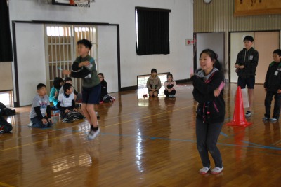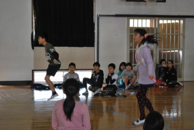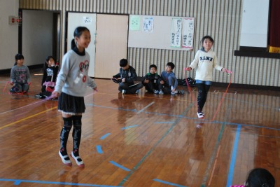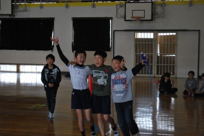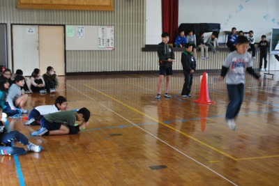 平成27年度校内なわとび大会(準決勝・決勝) 投稿日時 : 2016/02/05 学校サイト管理者 2月4日(木)昼休みに体育委員会児童の運営のもと、「校内なわとび大会」の準決勝と決勝戦を行いました。さすがにベスト4だけあって、熱戦・接線ばかりでした。チームメートが引っかからないように祈っている姿がとても印象的でした。優勝は「レッドソックス」2位は「きらりんず」3位は「HAPPY2」と「もえろ!女子バスケ」でした。おめでとうございます!