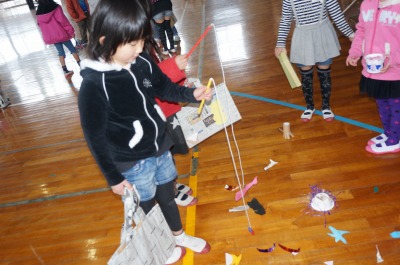 2月16日(火)第5校時の生活科の時間に1・2年生合同で手作りおもちゃを使ってお楽しみ会を行いました。ボーリングや釣り、キャタピラレース、うちわを使って車を走らせるレースなど、工夫を凝らしたおもちゃを使って、みんなで楽しく活動することができました。