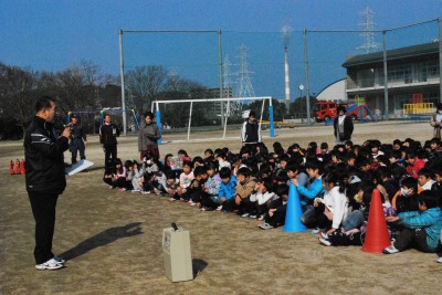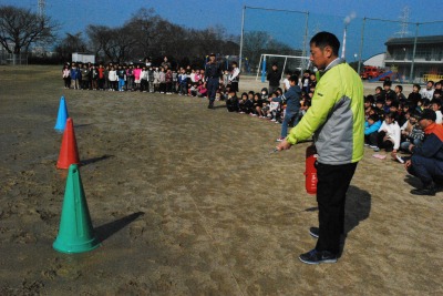 2月24日(水)第2校時に荒尾消防署の方を講師にお招きして地震・火災避難訓練を行いました。前回3分55秒ほどかかった時間が今回は3分30秒ほどで避難することができました。いつ、どこで、災害に遭遇するかはわかりません。いざというときに備えて、「自分の命は自分で守る」ために落ち着いて行動する必要があります。これを機会にご家庭でもお子さんとお話をしていただきますようにお願いします。また、保護者の方で、まだ、学校安心・安全メールに登録されていない方は、登録をされますようにお願いします。※学校安心・安全メールは毎年更新する必要がありますので、4月の新学期には更新されますようお願いいたします。