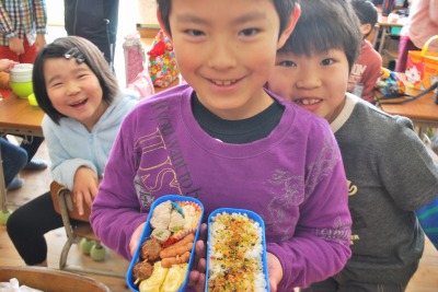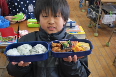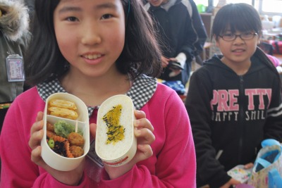 2月28日(日)「マイ弁当デー」を実施しました。たくさんの児童が自分でおかずを作ったりおうちの人と一緒に作ってつめたりして一生懸命にお弁当作りに挑戦しました。とっても、うれしそうに、おいしそうに笑顔で食べていました。保護者の皆さん、ご協力ありがとうございました。今後も、お休みの日などを利用して親子で楽しく料理をしておいしく食べる経験を重ねて、食に対する感謝の気持ちを育てていってほしいです。