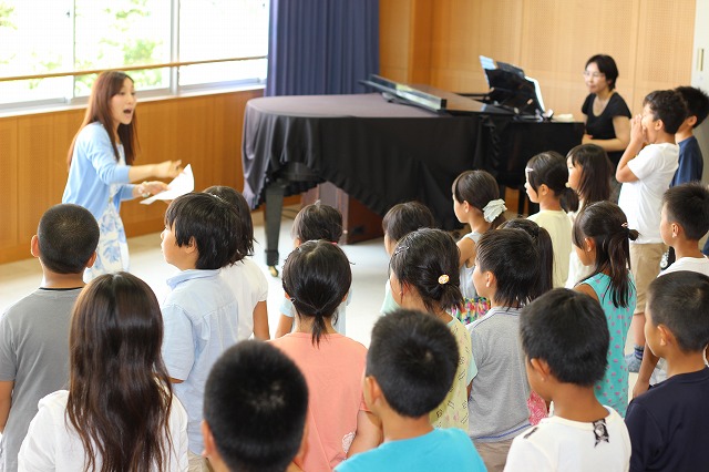 今日は、国際童謡館専属歌手の「そがまみこ」さんが来校されて、3年生へ歌の指導をしていただきました。