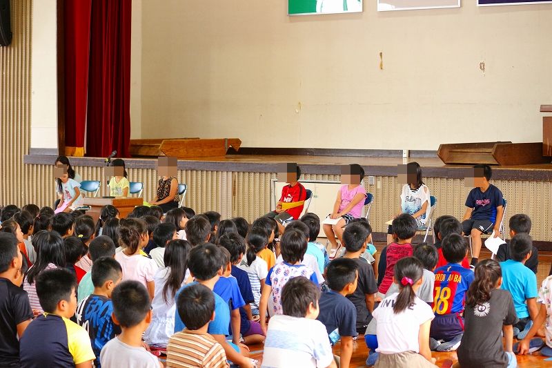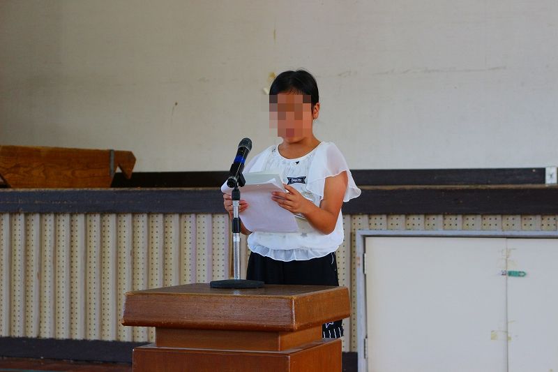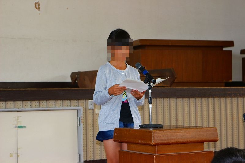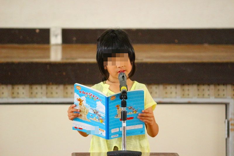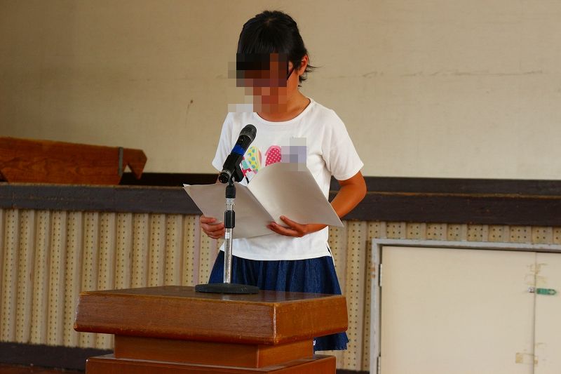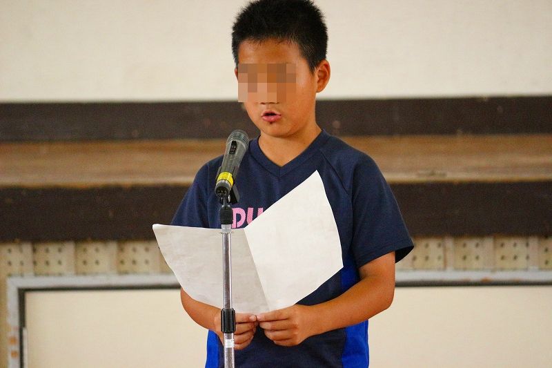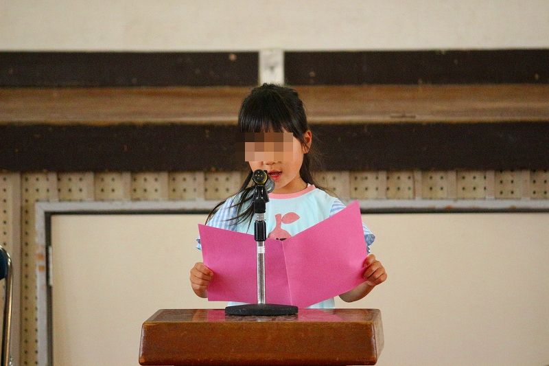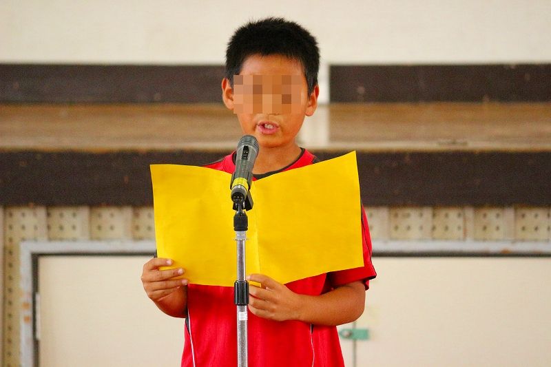 ↑ プール開きの司会は体育委員長の児童がしてくれました。