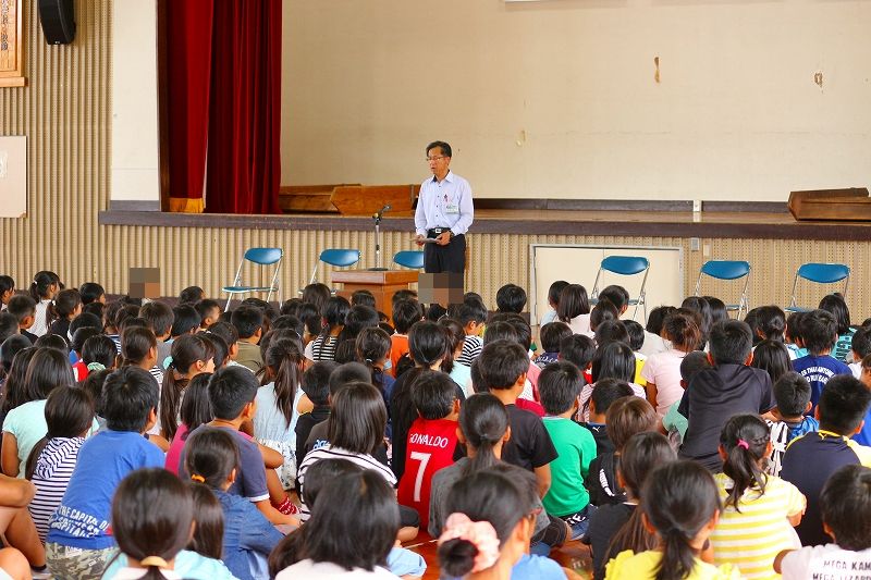 ↑ 校長先生は各学年のプール開きに出席され、「水泳は命に関わるので、しっかり気持ちを引き締めて!」と話をされました。