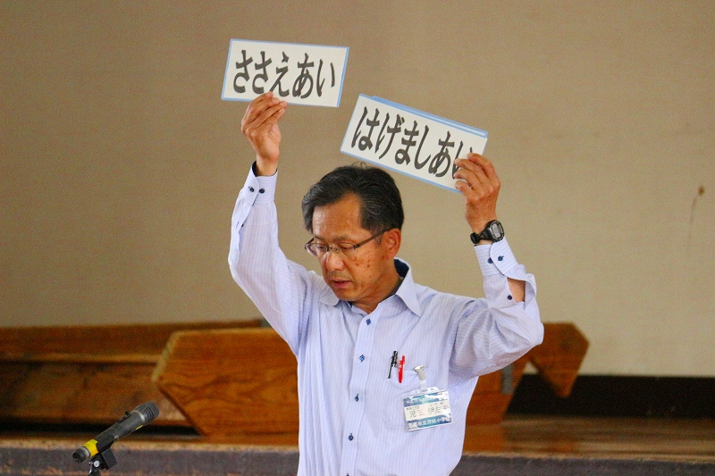 ↑ はじめの言葉で「自分の記録を伸ばしてください。」と話しています。