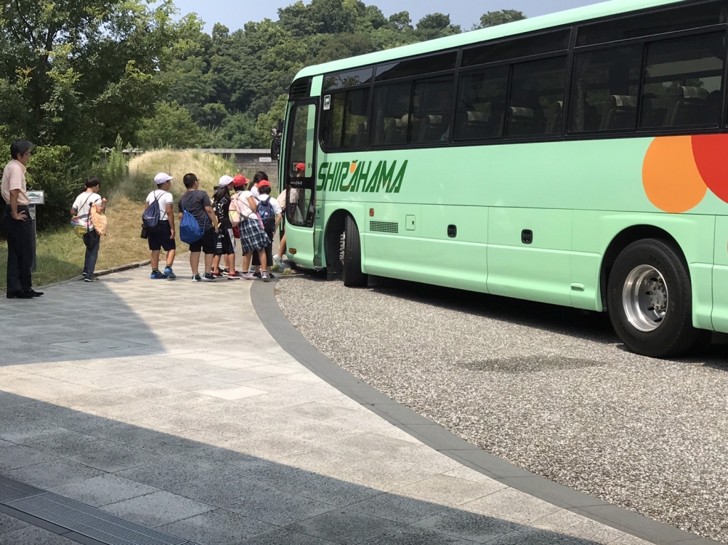 13時36分頃に、あしきた青少年の家を貸し切りバスで出発しました。