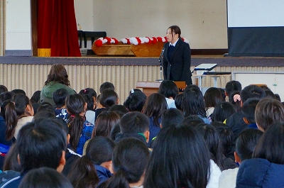 2018年3月の記事一覧 2018年3月 全ての記事 カテゴリ 今日の出来事 連絡事項 教科 総合的な学習の時間 行事・特別活動 本・雑誌 アーカイブ 2025年12月 (13) 2025年11月 (13) 2025年10月 (16) 2025年9月 (19) 2025年8月 (1) 2025年7月 (12) 2025年6月 (12) 2025年5月 (11) 2025年4月 (11) 2025年3月 (11) 2025年2月 (7) 2025年1月 (8) 2024年12月 (24) 2024年11月 (24) 2024年10月 (20) 2024年9月 (21) 2024年8月 (1) 2024年7月 (11) 2024年6月 (18) 2024年5月 (17) 2024年4月 (5) 2024年3月 (29) 2024年2月 (32) 2024年1月 (34) 2023年12月 (27) 2023年11月 (37) 2023年10月 (32) 2023年9月 (43) 2023年8月 (6) 2023年7月 (29) 2023年6月 (51) 2023年5月 (46) 2023年4月 (22) 2023年3月 (41) 2023年2月 (29) 2023年1月 (25) 2022年12月 (30) 2022年11月 (44) 2022年10月 (45) 2022年9月 (40) 2022年8月 (8) 2022年7月 (26) 2022年6月 (44) 2022年5月 (41) 2022年4月 (27) 2022年3月 (27) 2022年2月 (20) 2022年1月 (15) 2021年12月 (16) 2021年11月 (18) 2021年10月 (25) 2021年9月 (24) 2021年8月 (0) 2021年7月 (8) 2021年6月 (11) 2021年5月 (2) 2021年4月 (7) 2021年3月 (5) 2021年2月 (3) 2021年1月 (3) 2020年12月 (4) 2020年11月 (10) 2020年10月 (6) 2020年9月 (3) 2020年8月 (2) 2020年7月 (3) 2020年6月 (6) 2020年5月 (3) 2020年4月 (5) 2020年3月 (3) 2020年2月 (4) 2020年1月 (5) 2019年12月 (6) 2019年11月 (13) 2019年10月 (7) 2019年9月 (10) 2019年8月 (5) 2019年7月 (15) 2019年6月 (10) 2019年5月 (7) 2019年4月 (11) 2019年3月 (6) 2019年2月 (10) 2019年1月 (11) 2018年12月 (7) 2018年11月 (20) 2018年10月 (1) 2018年9月 (0) 2018年8月 (0) 2018年7月 (0) 2018年6月 (0) 2018年5月 (1) 2018年4月 (3) 2018年3月 (16) 2018年2月 (12) 2018年1月 (6) 2017年12月 (14) 2017年11月 (22) 2017年10月 (7) 2017年9月 (6) 2017年8月 (2) 2017年7月 (34) 2017年6月 (7) 2017年5月 (9) 2017年4月 (5) 2017年3月 (4) 2017年2月 (2) 2017年1月 (6) 2016年12月 (1) 2016年11月 (8) 2016年10月 (5) 2016年9月 (3) 2016年8月 (3) 2016年7月 (9) 2016年6月 (5) 2016年5月 (14) 2016年4月 (10) 2016年3月 (13) 2016年2月 (15) 2016年1月 (12) 2015年12月 (22) 2015年11月 (10) 2015年10月 (12) 2015年9月 (5) 2015年8月 (6) 2015年7月 (18) 2015年6月 (13) 2015年5月 (6) 2015年4月 (0) 2015年3月 (1) 2015年2月 (0) 2015年1月 (0) 2014年12月 (0) 2014年11月 (1) 2014年10月 (0) 2014年9月 (0) 2014年8月 (0) 2014年7月 (0) 2014年6月 (0) 2014年5月 (0) 2014年4月 (0) 2014年3月 (1) 10件 1件 5件 10件 20件 50件 100件 卒業式 投稿日時 : 2018/03/27 学校サイト管理者 カテゴリ:行事・特別活動 平成29年度卒業式を挙行しました。晴天にも恵まれ、卒業生63名の前途を祝福しているようでした。万田小学校の6年間の思い出を胸に抱いて、大きく羽ばたいてください!卒業おめでとう!!-- 卒業式前 投稿日時 : 2018/03/23 学校サイト管理者 カテゴリ:行事・特別活動 本日は雨も上がり、晴天となりました。ただ、駐車場の地面が少しぬかるんでいるところもありますので、ご注意ください。なお、保護者の受付及び会場入場は9時からです。卒業式式場は、昨日、4・5年の在校生と職員で心をこめて準備をおこないました。すばらしい卒業式になりますように!! 修了式② 投稿日時 : 2018/03/22 学校サイト管理者 カテゴリ:行事・特別活動 1年間の反省及び来年度の抱負発表のあとに、校長先生のお話がありました。↑ 児童もよい姿勢で、しっかりと校長先生のお話を聞いていました。 ↓↑ 生徒指導担当からは、春休みを安全にくらすために、3つの車(消防車・救急車・パトカー)を走らせないように自分の行動に気をつけてくださいと話がありました。↑ 養護教諭からは、早寝早起き朝ごはんをすることで、生活のリズムを乱さないでくださいと話がありました。-- 修了式① 投稿日時 : 2018/03/22 学校サイト管理者 カテゴリ:行事・特別活動 1限目に、全校児童参加の修了式をおこないました。1年間の締めくくりの行事なので、児童も緊張感をもちながら参加したようです。修了式の前に、エコキャップ収集活動や部活動、読書感想画、造形展の表彰をおこないました。修了式がはじまります。修了証授与です。次は、1年間の反省と来年度への抱負発表です。各学年の代表者が、全校児童の前で発表しました。-- 明後日は修了式です。 投稿日時 : 2018/03/20 学校サイト管理者 カテゴリ:連絡事項 放課後、運動場でサッカー部の児童が練習に励んでいました。さて、明日の水曜日は春分の日でお休みです。また、明後日の木曜日はは修了式、大掃除と1年間の締めくくりの行事です。金曜日には、卒業式という大きな行事も控えています。気持ちを引き締めて、1年間最後の行事に臨んでほしいと思います。-- 桜開花 投稿日時 : 2018/03/19 学校サイト管理者 カテゴリ:今日の出来事 16日(金)の正門前の桜です。春を待ち望んでいるようでした。ところが...本日19日(月)は生憎の雨でしたが、なんと、運動場西側の桜が開花していました。職員の話では、昨日、開花していたとのことです。日本には分類にもよりますが約600種類の桜があります。牛乳配送の業者の方と話した中では、本日午前10時の時点では、市内の他校の桜はまだ開花していないとの話でした。高知県では先週の木曜日に桜が開花したというニュースが流れたので、本校の桜の開花を児童とともに楽し