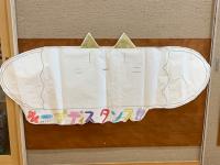 5,6年生の保健委員さんたちが、校内の至るところに「キープディスタンス(身体的距離を保つ)」を意識するための模型図を飾ってくれています。
